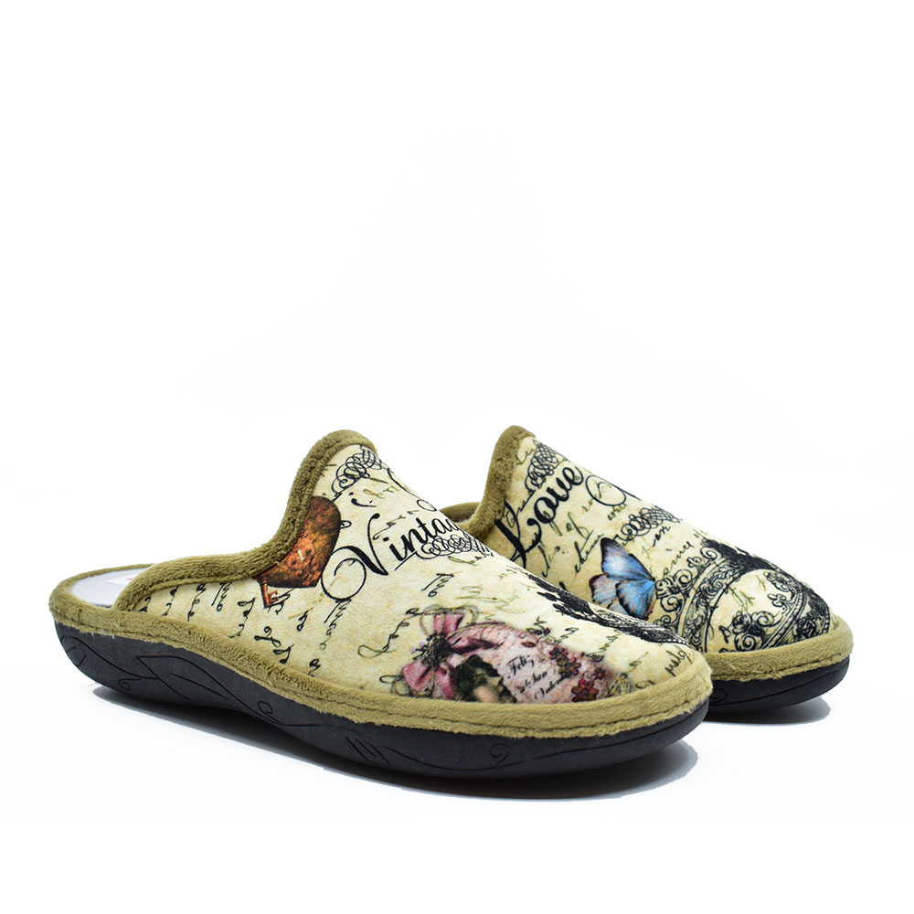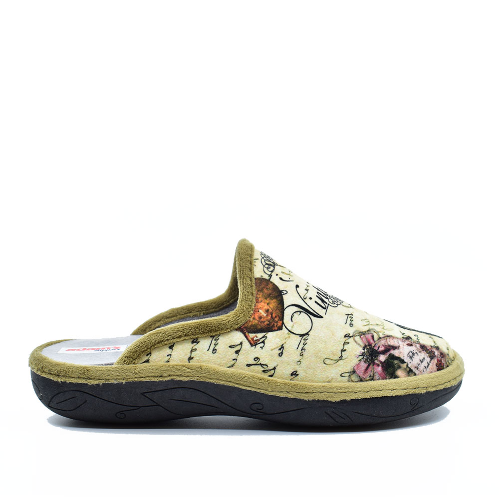 Γυναικείες παντόφλες της ισπανικής εταιρείας ADAMS με ζεστή επένδυση από ύφασμα βελούδο και αντιολισθητική σόλα για σταθερότητα και άνεση. Με ιδιαίτερο τύπωμα.