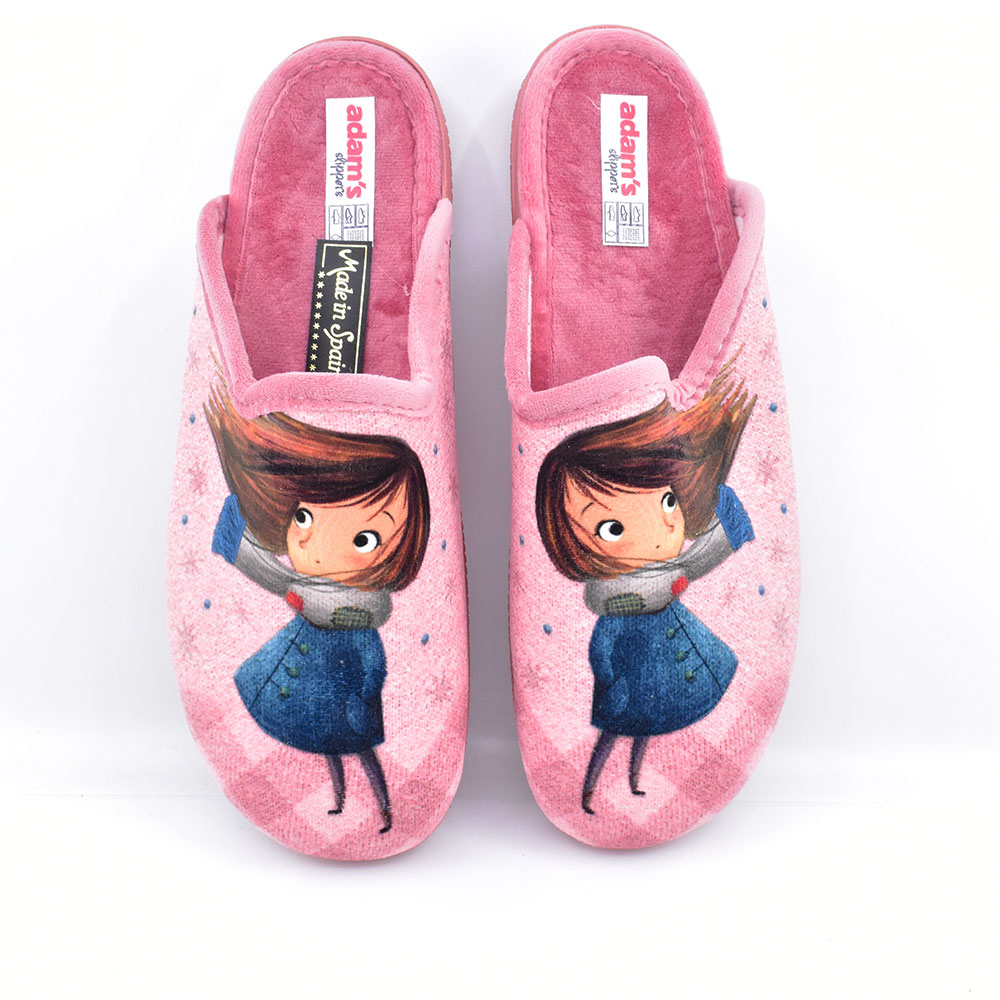 Γυναικείες παντόφλες της ισπανικής εταιρείας ADAMS με επένδυση από ζεστό ύφασμα και αντιολισθητική σόλα για περισσότερη ασφάλεια. Ιδανικές και άνετες για καθημερινή χρήση.