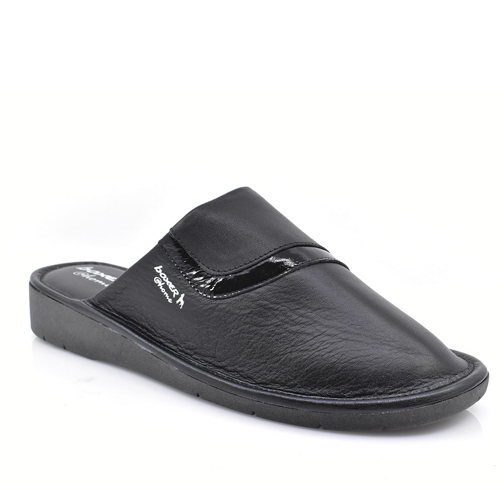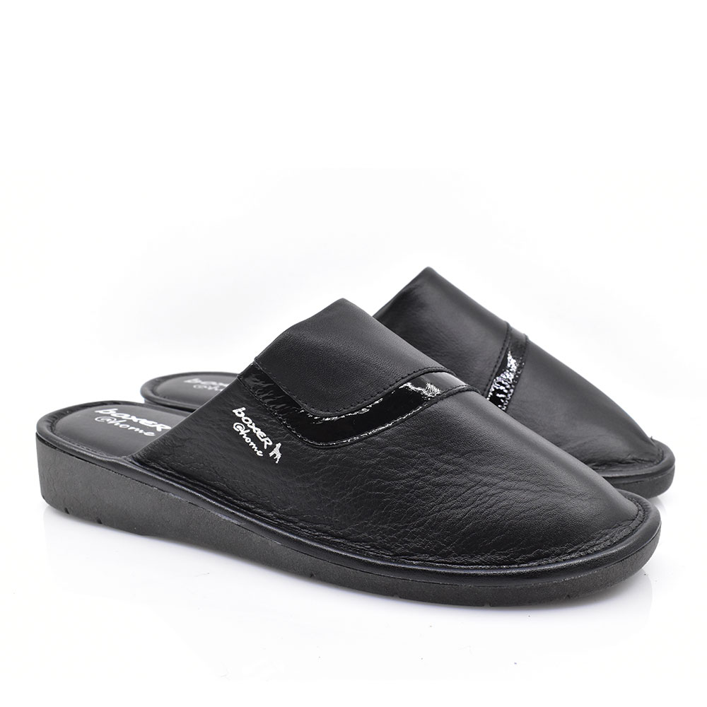 Γυναικείες δερμάτινες παντόφλες της εταιρείας BOXER, ελληνικής προέλευσης. Διαθέτουν ανατομικό μαλακό πάτο για άνετο βάδισμα όλες τις ώρες της ημέρας.