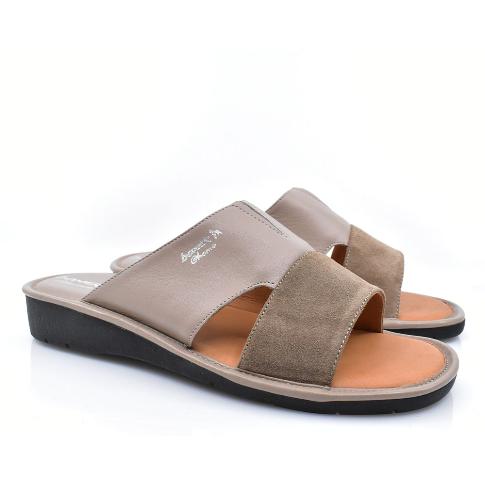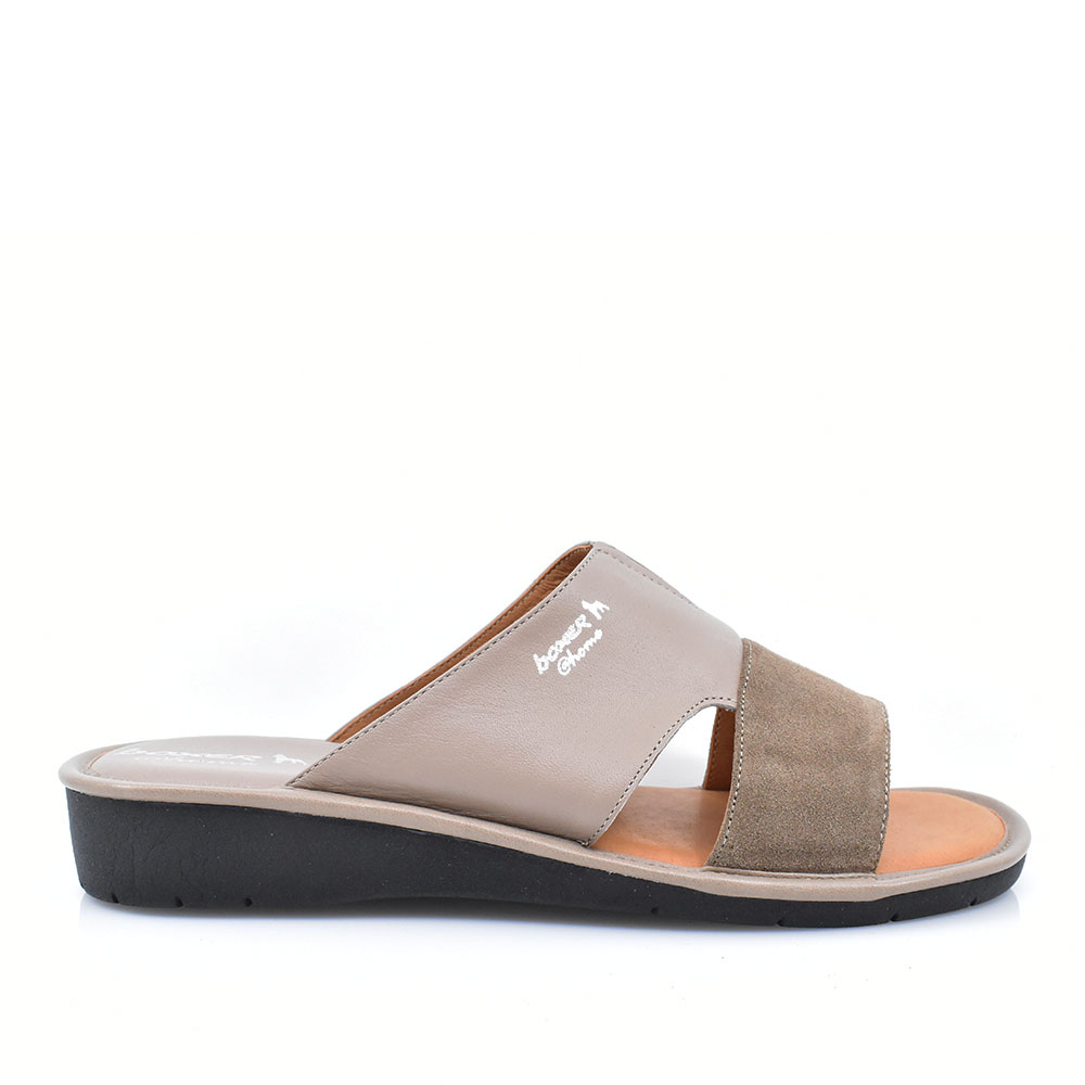Γυναικείες δερμάτινες παντόφλες της εταιρείας BOXER, ελληνικής προέλευσης. Διαθέτουν ανατομικό μαλακό πάτο για άνετο βάδισμα όλες τις ώρες της ημέρας.
