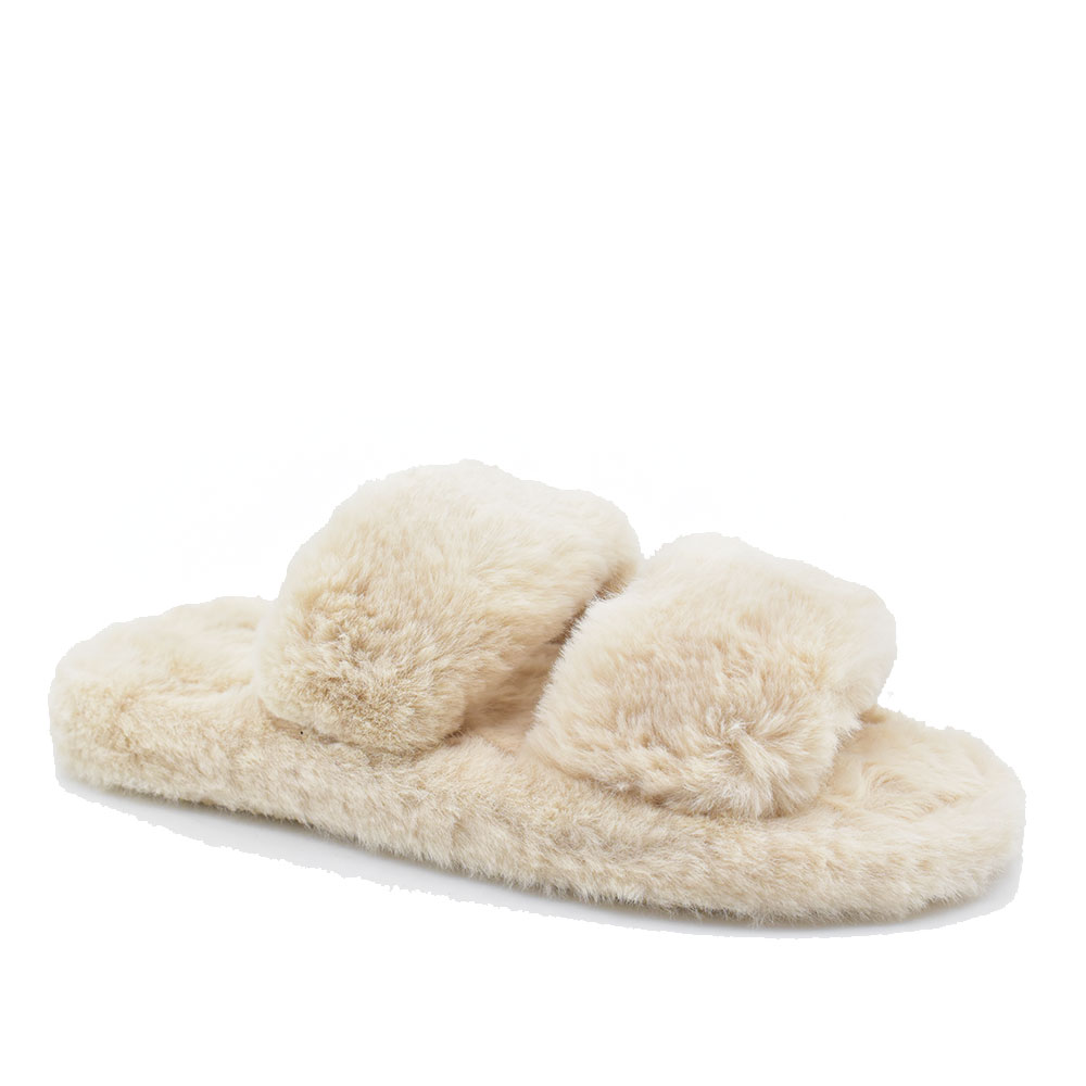 Γυναικείες παντόφλες σπιτιού της εταιρείας MY SOFT με επένδυση από ζεστή συνθετική γούνα για καθημερινή χρήση.