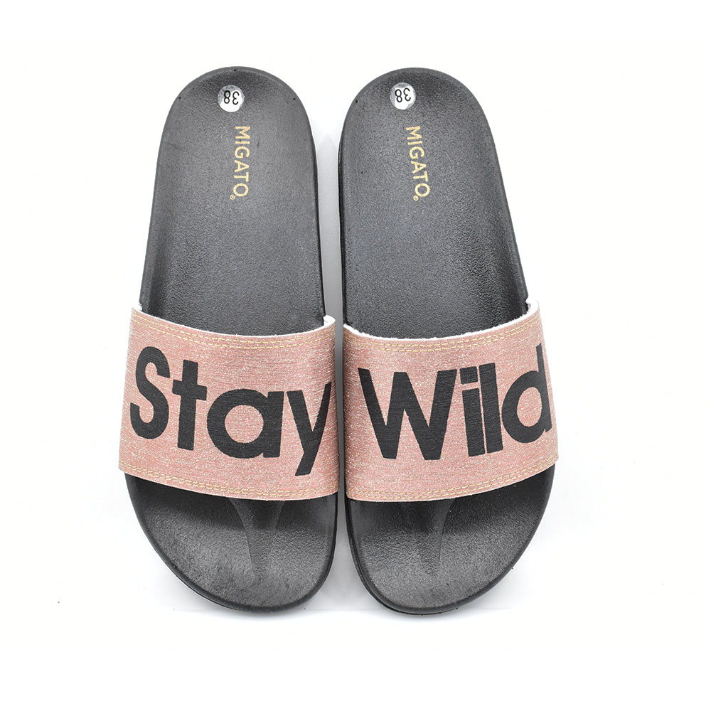 Γυναικείες σαγιονάρες της εταιρείας MIGATO κατασκευασμένες από συνθετικό υλικό με μαλακό πάτο για άνετο βηματισμό σε ένα μοντέρνο σχέδιο ιδανικά να φορεθούν στην παραλία.