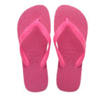 Γυναικείες σαγιονάρες της εταιρείας HAVAIANAS κατασκευασμένες εξ’ολοκλήρου από επεξεργασμένο καουτσούκ. Η εξωτερική σόλα τους διαθέτει αυλακώσεις για αποτελεσματική πρόσφυση και ανάγλυφο λογότυπο της εταιρείας. Σας προτείνουμε να επιλέξετε ένα νούμερο μικρότερο από το real size του ποδιού καθώς έχουν μεγάλη φόρμα.