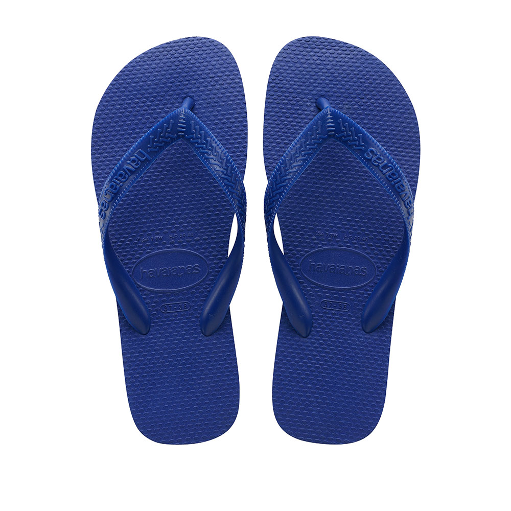 Γυναικείες σαγιονάρες της εταιρείας HAVAIANAS κατασκευασμένες εξ’ολοκλήρου από επεξεργασμένο καουτσούκ. Η εξωτερική σόλα τους διαθέτει αυλακώσεις για αποτελεσματική πρόσφυση και ανάγλυφο λογότυπο της εταιρείας. Σας προτείνουμε να επιλέξετε ένα νούμερο μικρότερο από το real size του ποδιού καθώς έχουν μεγάλη φόρμα.