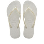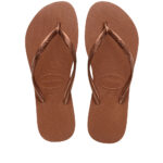 Γυναικείες σαγιονάρες της εταιρείας HAVAIANAS κατασκευασμένες εξ’ολοκλήρου από επεξεργασμένο καουτσούκ. Η εξωτερική σόλα τους διαθέτει αυλακώσεις για αποτελεσματική πρόσφυση και ανάγλυφο λογότυπο της εταιρείας. Σας προτείνουμε να επιλέξετε ένα νούμερο μεγαλύτερο από το real size του ποδιού καθώς έχουν μεγάλη φόρμα.