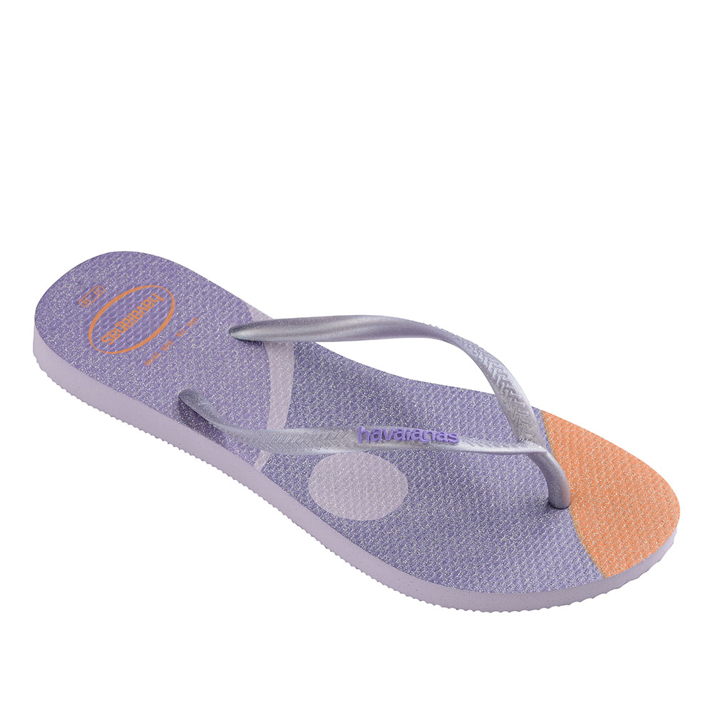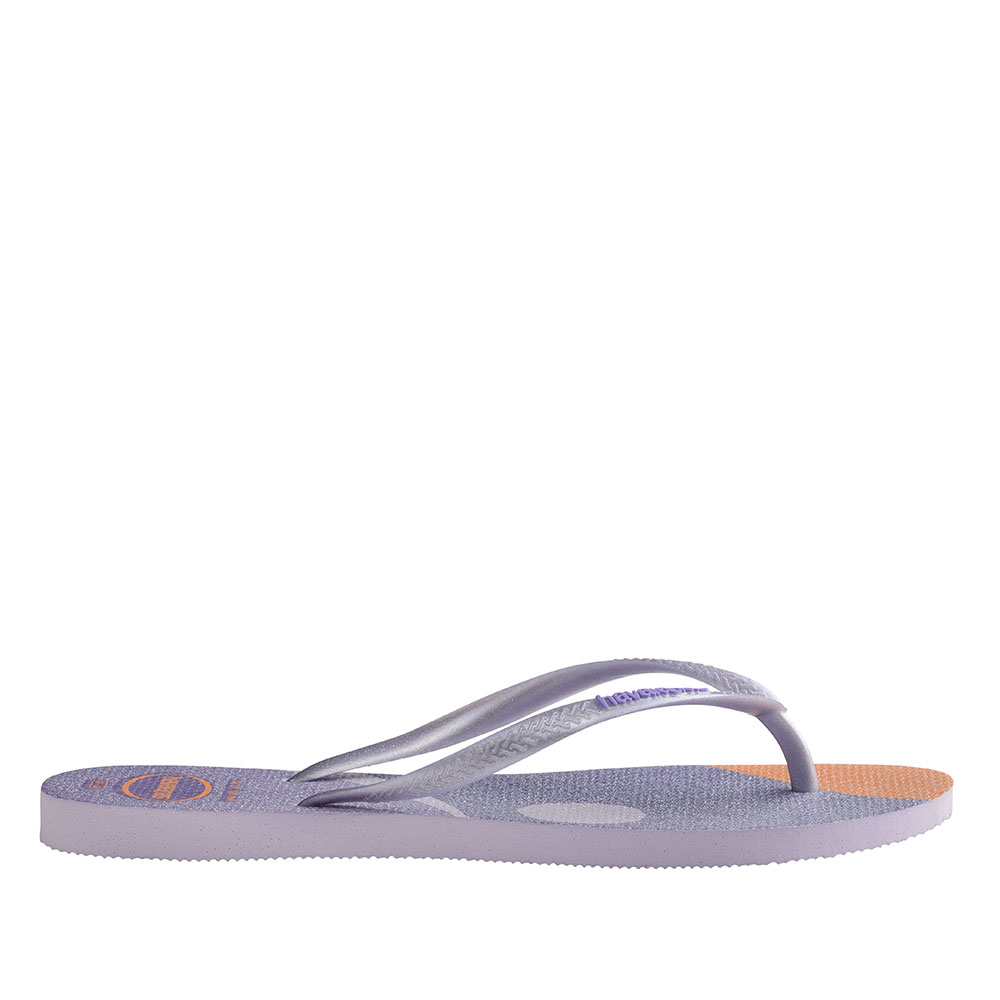Γυναικείες σαγιονάρες της εταιρείας HAVAIANAS κατασκευασμένες εξ’ολοκλήρου από επεξεργασμένο καουτσούκ. Η εξωτερική σόλα τους διαθέτει αυλακώσεις για αποτελεσματική πρόσφυση και ανάγλυφο λογότυπο της εταιρείας. Σας προτείνουμε να επιλέξετε ένα νούμερο μεγαλύτερο από το real size του ποδιού σας.