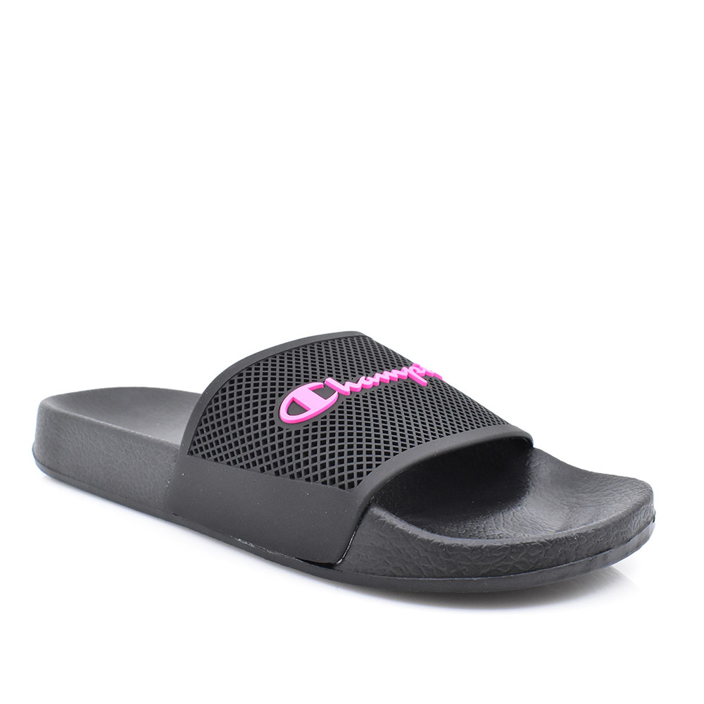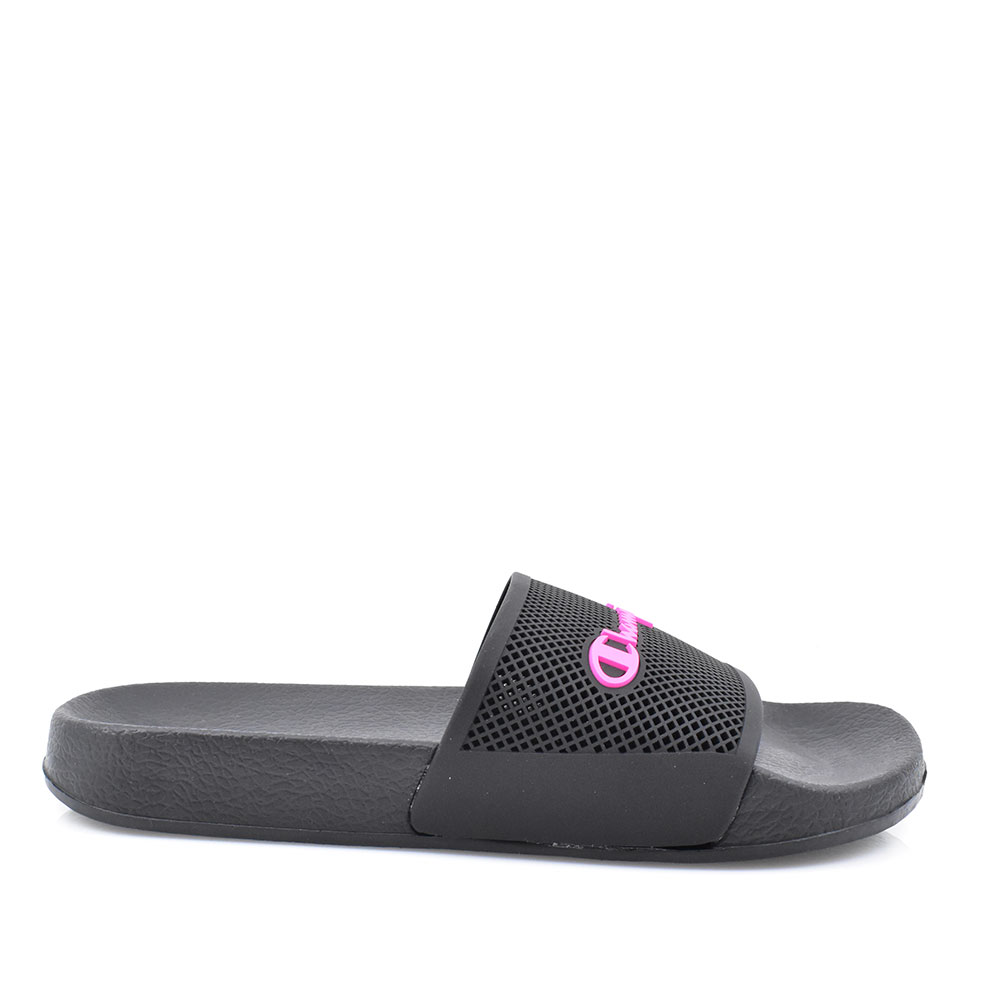 Γυναικείες σαγιονάρες της εταιρείας CHAMPION κατασκευασμένες εξ’ολοκλήρου από επεξεργασμένο συνθετικό υλικό. Διαθέτουν αντιολισθητική σόλα για περισσότερη ασφάλεια, με σχέδιο το λογότυπο της εταιρείας.