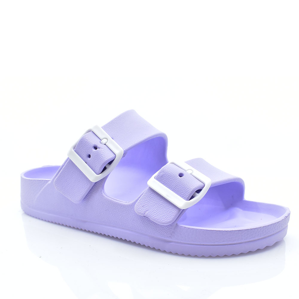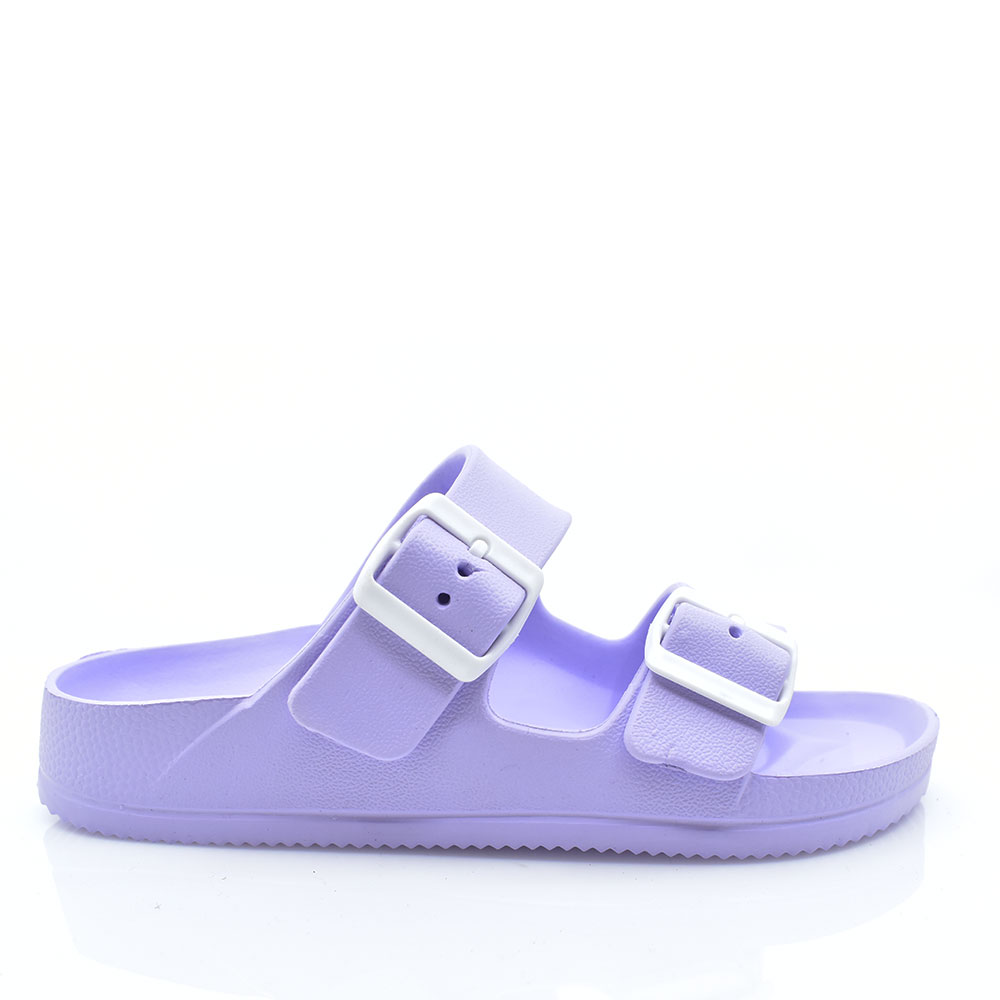 Γυναικείες σαγιονάρες της εταιρείας MITSUKO με δύο λουράκια στο επάνω μέρος και κούμπωμα ντοκά για καλύτερη εφαρμογή.