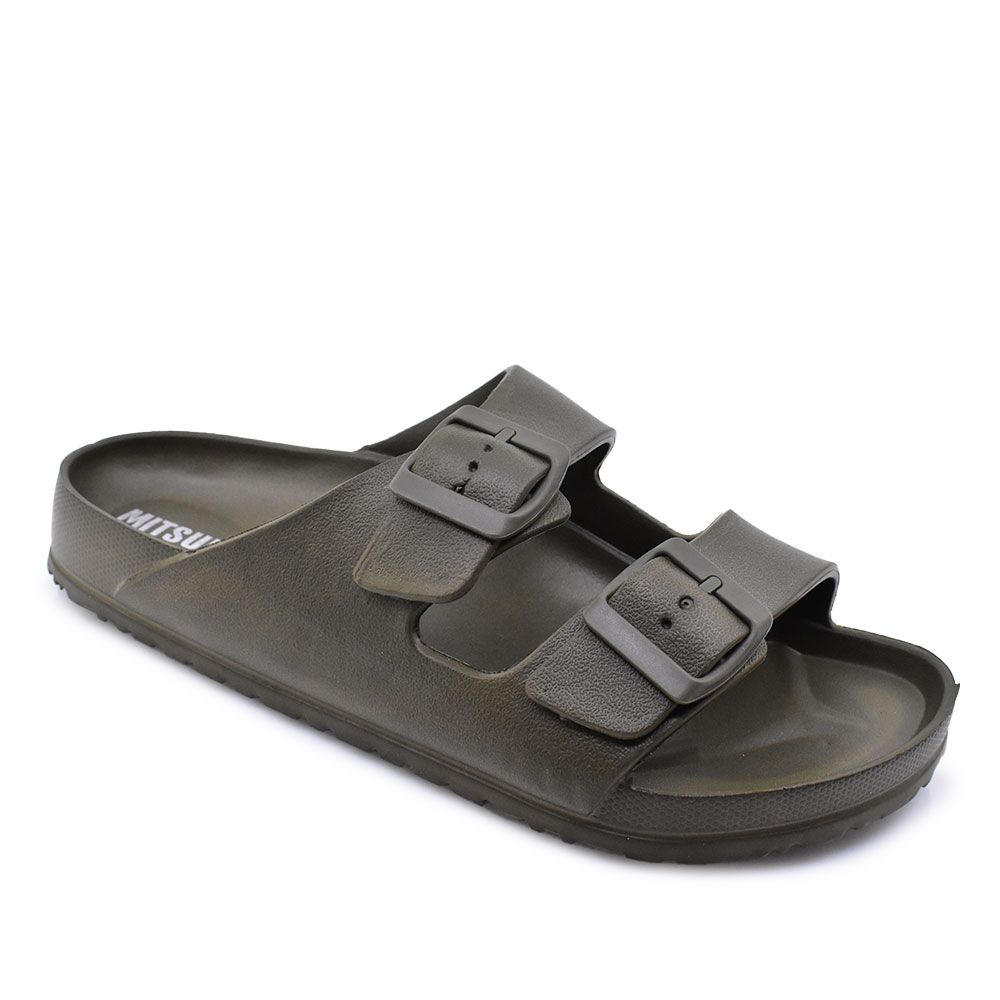 Γυναικείες σαγιονάρες της εταιρείας MITSUKO με δύο λουράκια στο επάνω μέρος και κούμπωμα ντοκά για καλύτερη εφαρμογή.