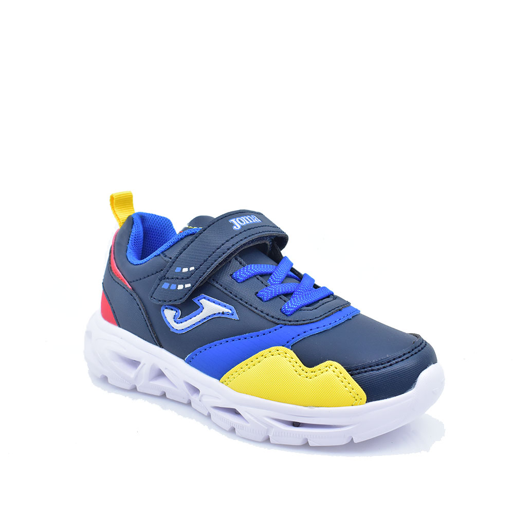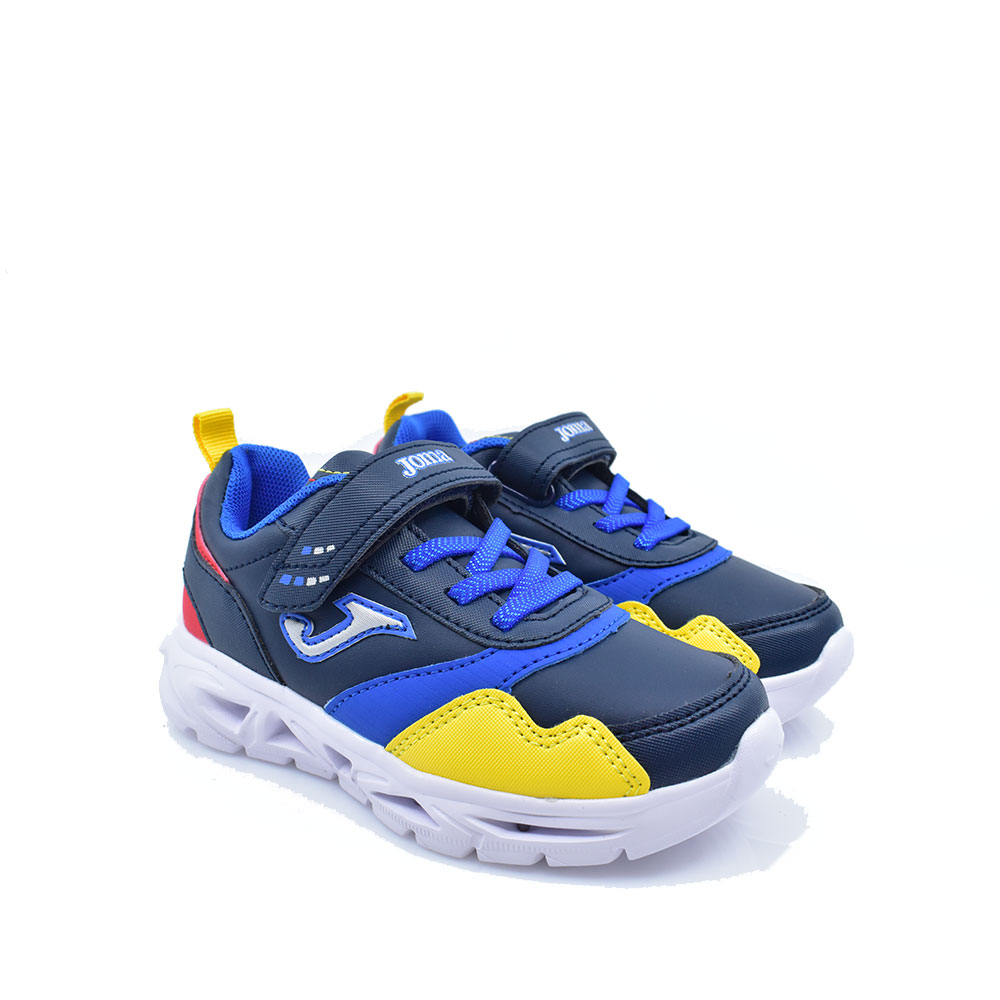 Παιδικά αθλητικά παπούτσια της εταιρείας JOMA κατασκευασμένα από συνθετικό υλικό υψηλής ποιότητας. Διαθέτουν αυτοκόλλητο και ελαστικά κορδόνια για εύκολη και γρήγορη εφαρμογή καθώς και αντιολισθητική σόλα για άνετα και σίγουρα βήματα. Με φωτάκια στην σόλα για πιο εντυπωσιακές εμφανίσεις!