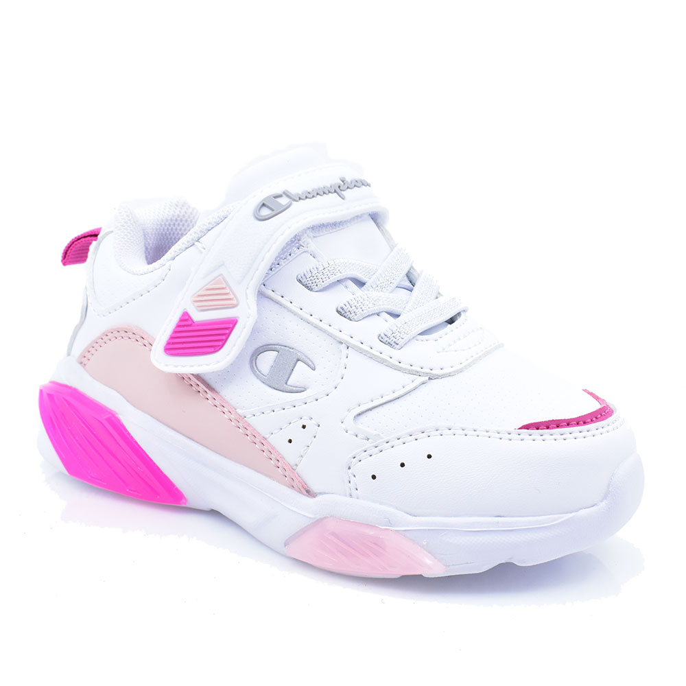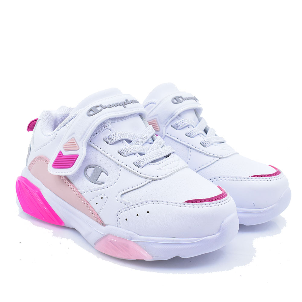 Παιδικά αθλητικά παπούτσια της εταιρείας CHAMPION κατασκευασμένα από συνθετικό υλικό με μαλακό πατάκι για άνετο βάδισμα. Διαθέτουν αντιολισθητική αντικραδασμική σόλα, με φωτάκια, κλείνουν με αυτοκόλλητη ταινία velcro και ελαστικά κορδόνια για εύκολη εφαρμογή.
