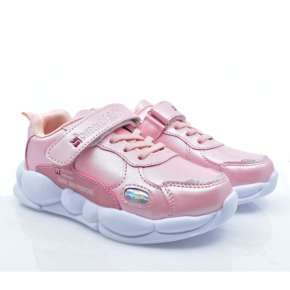 Παιδικά αθλητικά για κορίτσια της εταιρείας SMART KIDS κατασκευασμένα από συνθετικό υλικό με μαλακό εσωτερικό πάτο. Διαθέτουν αυτοκόλλητο στο επάνω καθώς και λαστιχένια κορδόνια για πιο εύκολη και γρήγορη εφαρμογή.