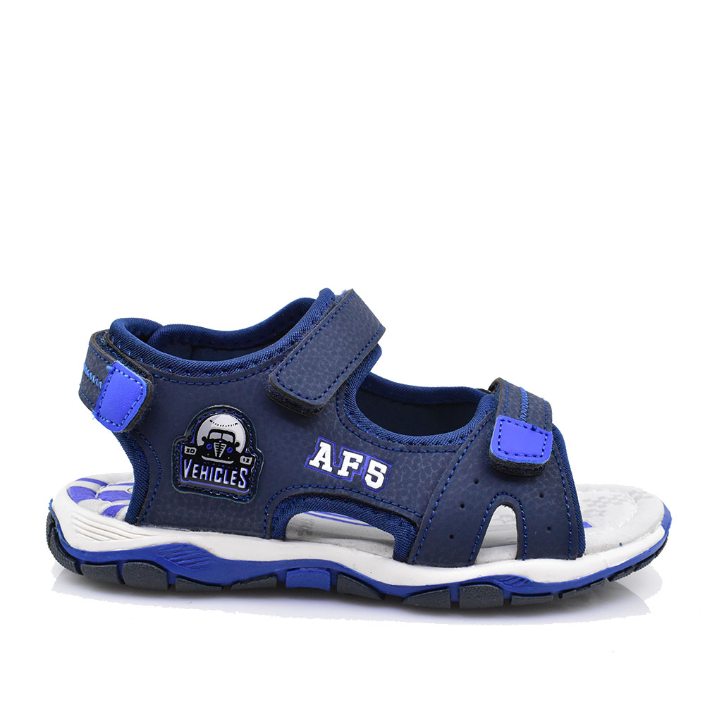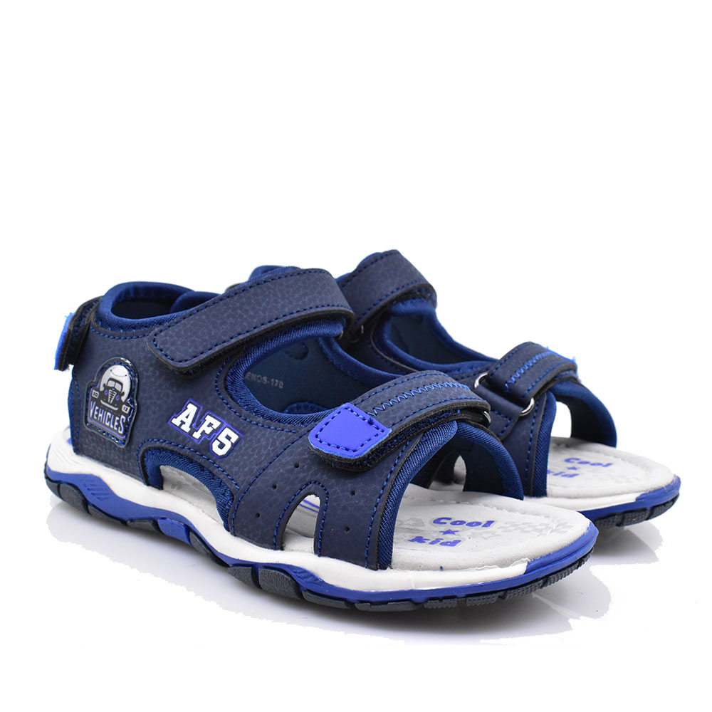 Παιδικά πέδιλα για αγόρια της εταιρείας IQ KIDS κατασκευασμένα από συνθετικό υλικό με δερμάτινο ανατομικό πάτο και αντιολισθητική σόλα για άνετα και σταθερά βήματα. Κλείνουν με velcro για εύκολη εφαρμογή και αφαίρεση.