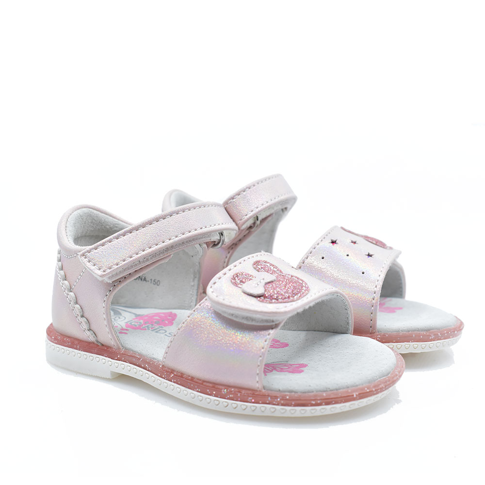 Παιδικά πέδιλα για τις μικρές μας φίλες της εταιρείας IQ KIDS κατασκευασμένα από συνθετικό υλικό με δερμάτινο ανατομικό πάτο και αντιολισθητική σόλα για άνετα βήματα.Κλείνουν με velcro για εύκολη εφαρμογή και αφαίρεση, με κλειστή φτέρνα για περισσότερη ασφάλεια.