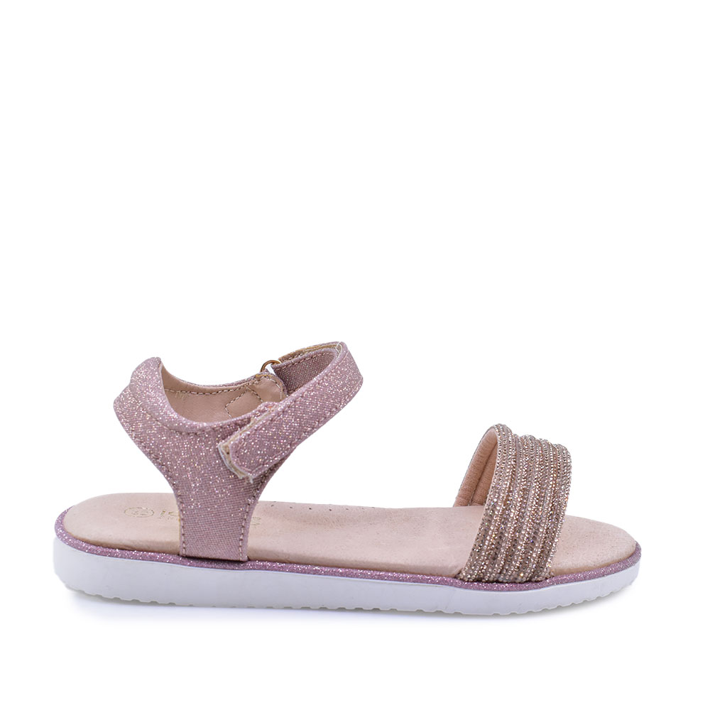 Παιδικά πέδιλα για κορίτσια της εταιρείας IQ KIDS κατασκευασμένα από συνθετικό υλικό με δερμάτινο ανατομικό πάτο και αντιολισθητική σόλα για άνετα και σταθερά βήματα.