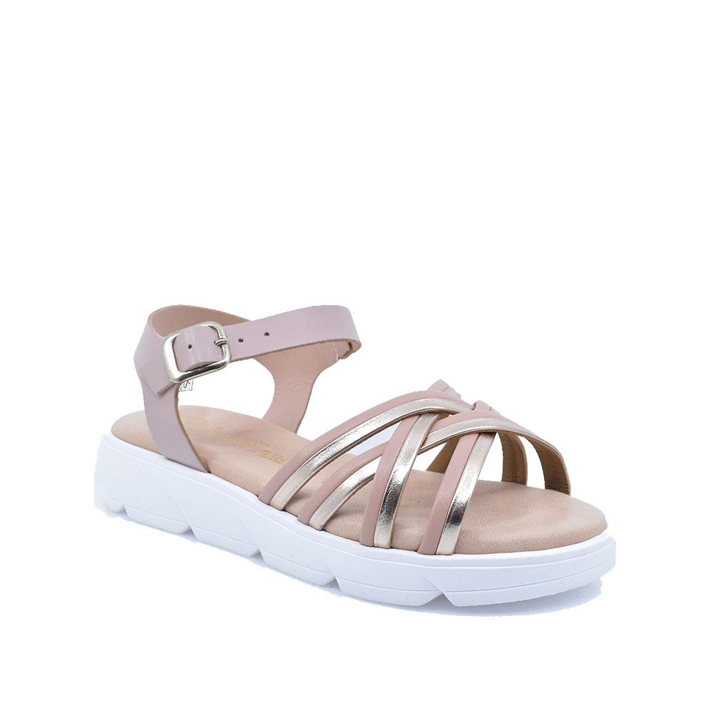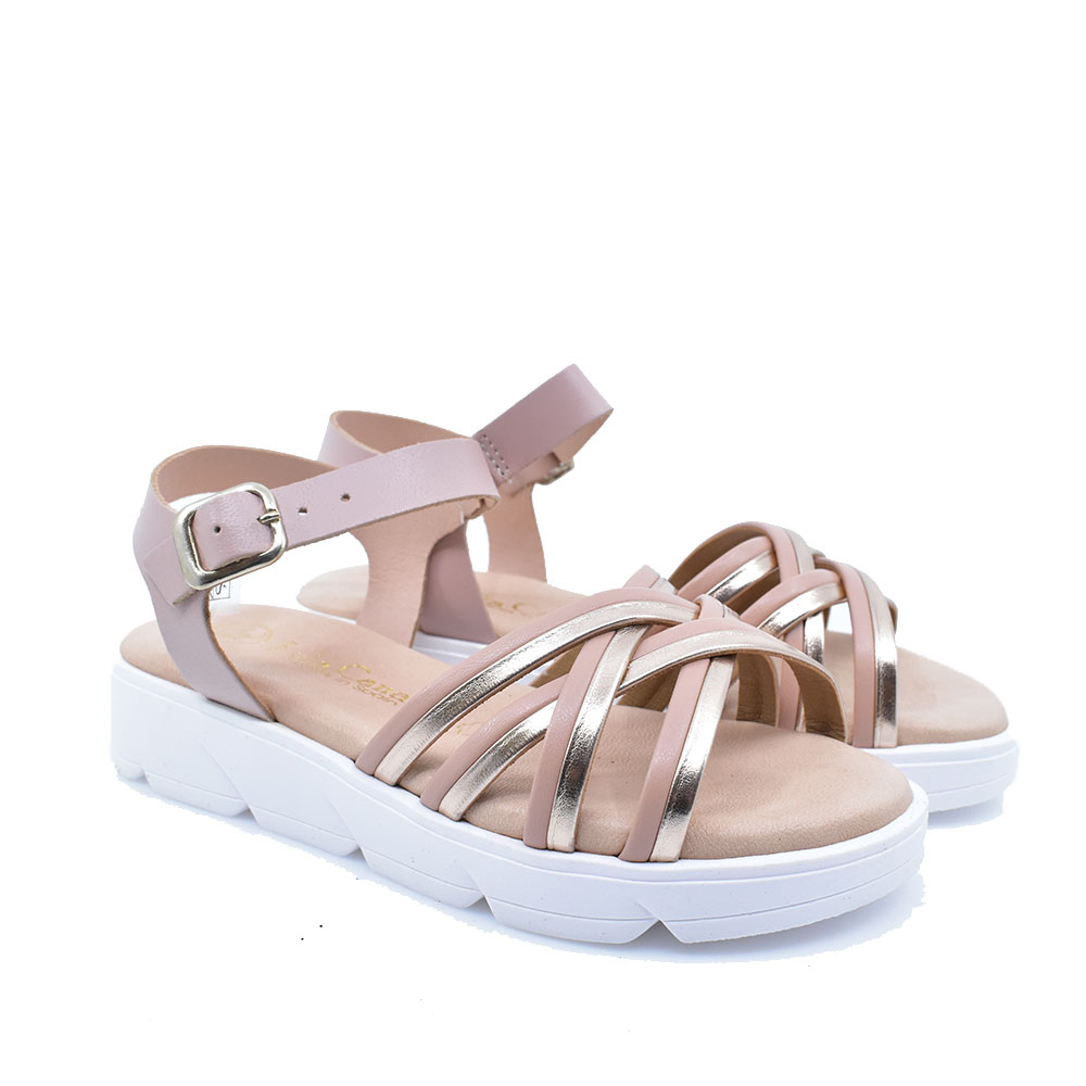Παιδικά πέδιλα για κορίτσια κατασκευασμένα από μαλακό δέρμα με αντιολισθητική σόλα για ασφάλεια σε κάθε βήμα. Ιδανικά για καθημερινή χρήση σε ένα πολύ μοντέρνο σχέδιο, δένουν με λουράκι γύρω από τον αστράγαλο.