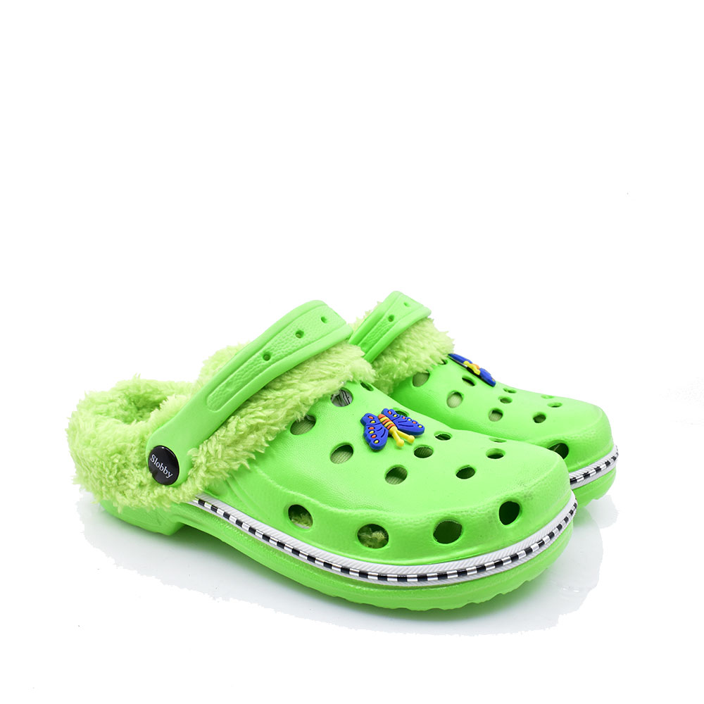 Παιδικά διάτρητα σαμπώ με επένδυση από συνθετική γούνα.