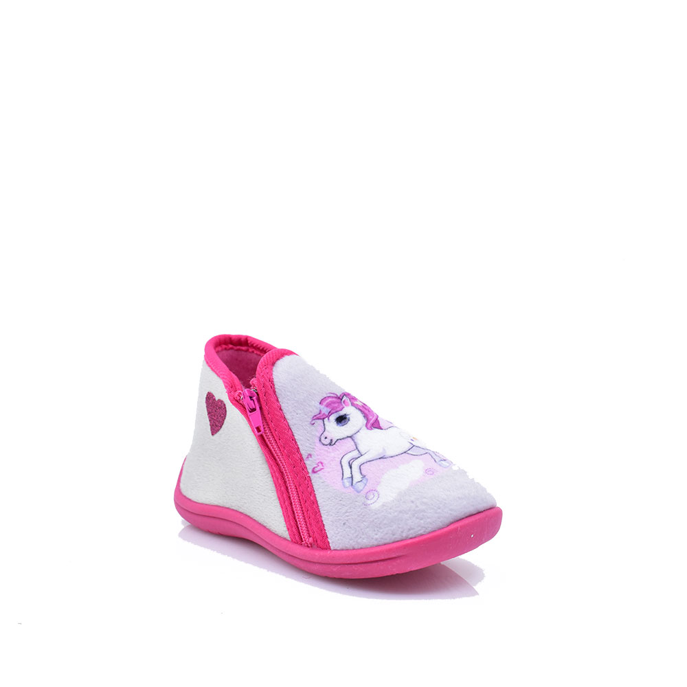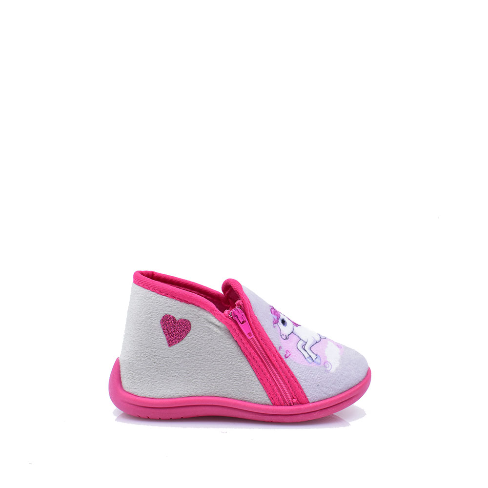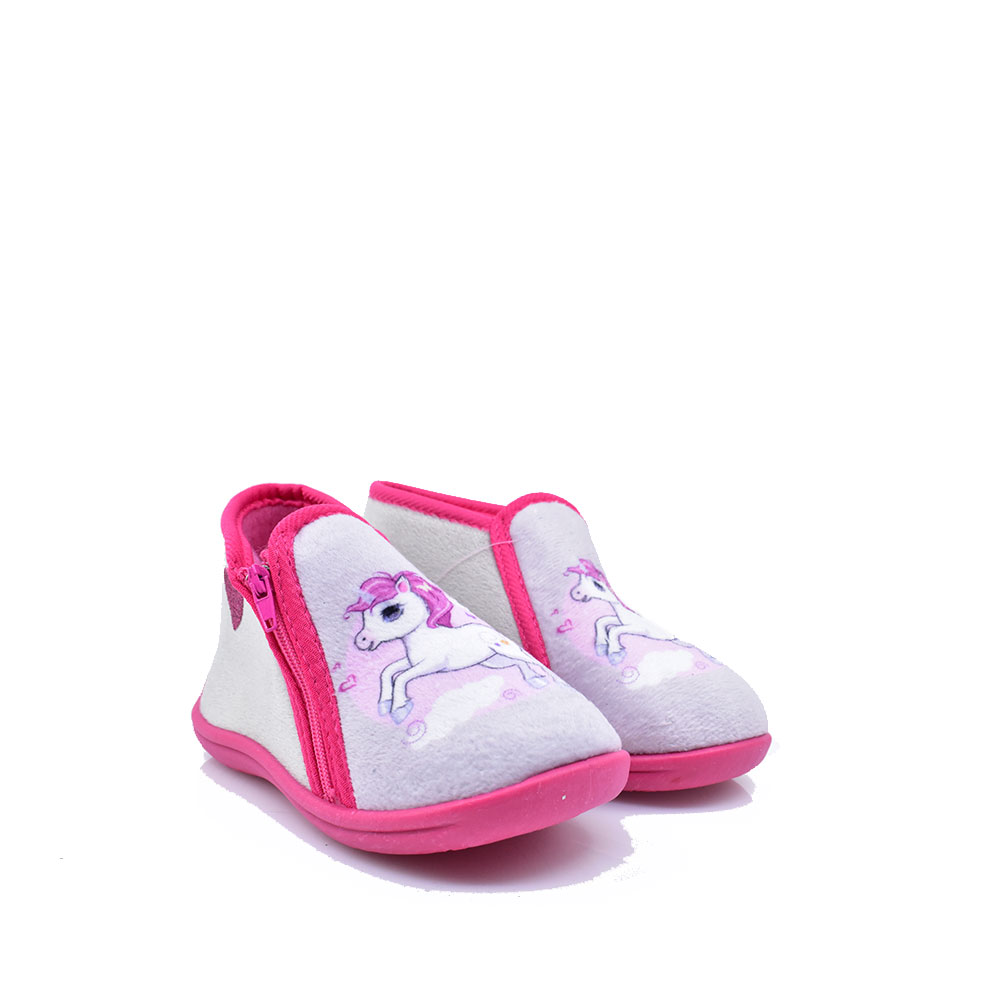 Παιδικές κλειστές παντόφλες της εταιρείας SMART KIDS κατασκευασμένα από υφασμάτινο υλικό με δερμάτινο μαλακό πατάκι για άνετο βάδισμα. Ιδανικά για καθημερινή χρήση ευκολοφόρετα καθώς διαθέτουν φερμουάρ στο πλάι.