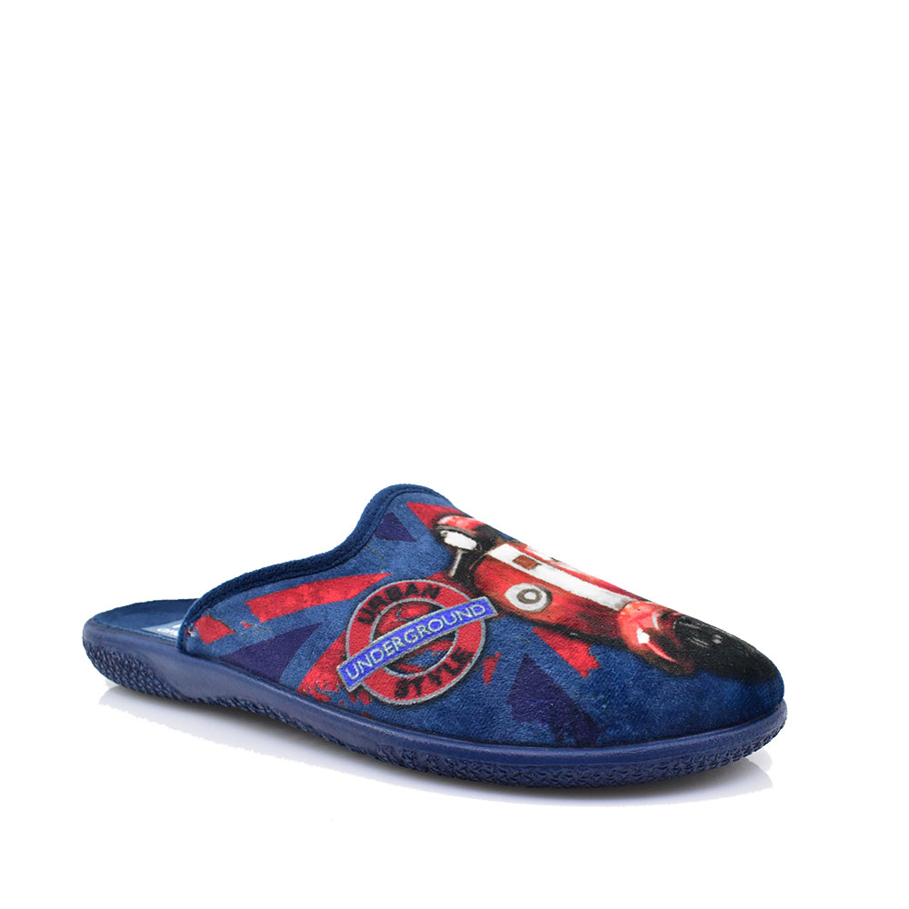 Παιδικές παντόφλες για αγόρια της εταιρείας FILD ANATOMIC με εσωτερική επένδυση από ύφασμα βελούδο, ανατομικό πάτο και αντιολισθητική σόλα για σταθερότητα και ασφάλεια.
