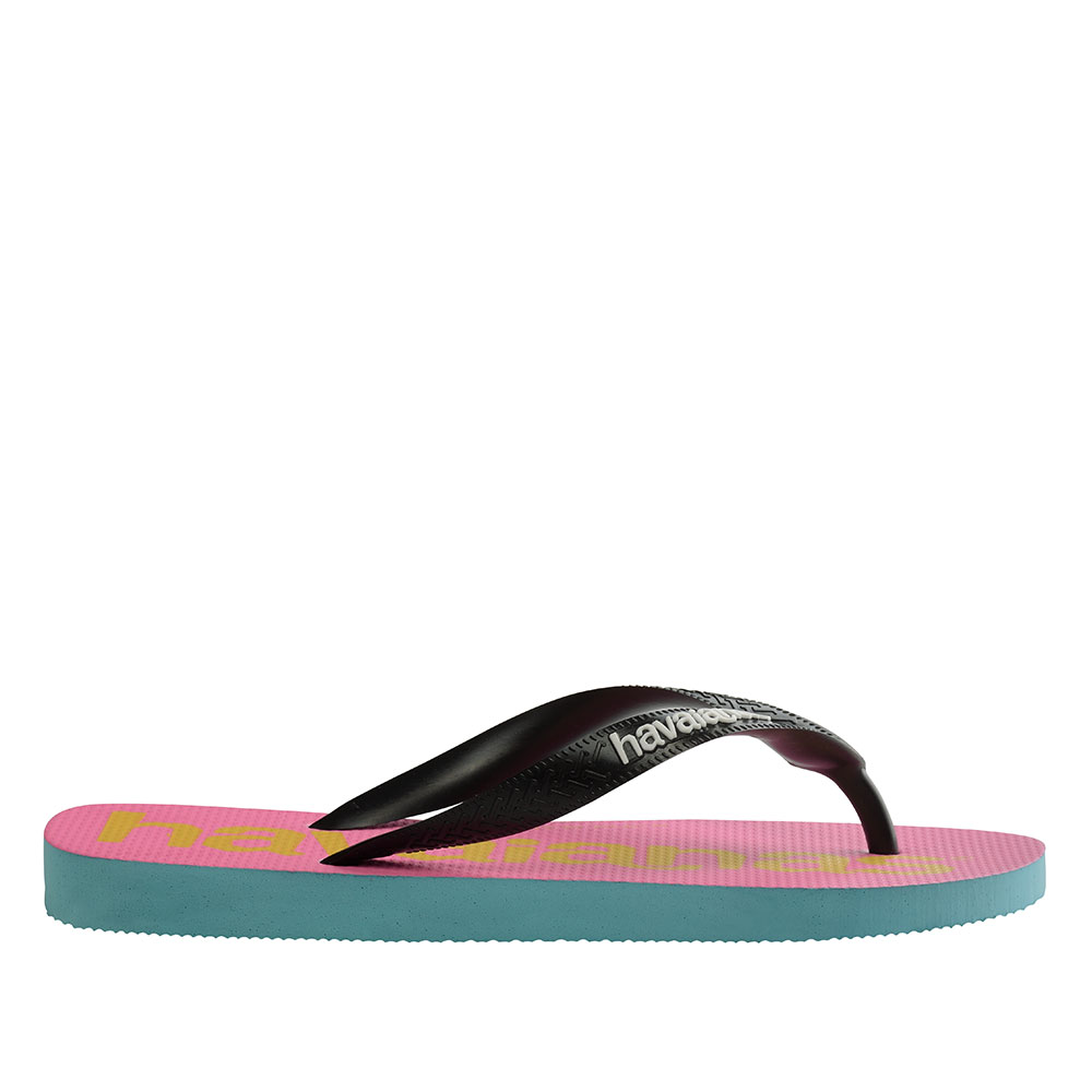 Εφηβικές σαγιονάρες της εταιρείας HAVAIANAS κατασκευασμένες εξ’ολοκλήρου από επεξεργασμένο καουτσούκ. Η εξωτερική σόλα τους διαθέτει αυλακώσεις για αποτελεσματική πρόσφυση και ανάγλυφο λογότυπο της εταιρείας. Σας προτείνουμε να επιλέξετε ένα νούμερο μεγαλύτερο από το real size του ποδιού σας.